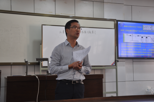 第二部分,新葡的京集团党委刘前树书记对许亮亮老师的课从教育论、教学法和心理学的角度做了深入而精彩的点评。刘书记指出本节课的成功之处有四点:1.深入研究高考真题和模拟题,精选出了符合学生认知水平和思维梯度的好题;2.整个课堂教学环节始终关注学生,精心设问,耐心释疑,师生互动热烈;3.以小组互动模式组织教学,及时投影展示学生答题情况,学生针对问题积极讨论质疑,生生互评精彩;4. 解题结束后让学生反思解题时遇到的知识缺陷和思维障碍,以期在后续学习中得到改进。同时刘书记也指出了本节课的不足之处:1. 例题精析耗时28分钟,教学语言可以再精炼;2. 在实验操作文字表述时强调不够充分,学生表述能力提升不够。