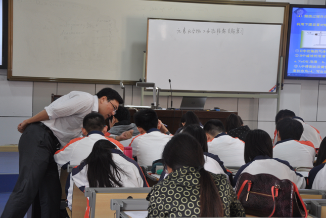 第一部分,由许亮亮老师开设了《元素化合物工业流程题专题复习》公开课。许老师以江苏高考真题和南京模拟题为切入点,通过例题精析,反馈提升,实战训练四个环节,以小组互动探究为课堂模式,引导学生总结、归纳并掌握了最新江苏高考工业流程试题的一般模式和核心考点,切实提高了学生的解题能力和科学素养,受到了在场老师的一致好评。