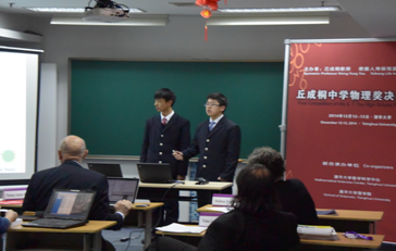 虽然经过了几星期的演练和潘老师的指点,我和赵亮仍然是被机智的物理学家们问出了许多不足。之后,我们就和潘老师以及几位家长在清华园里随便逛逛,还出去滑了趟雪,玩的十分high。但天晚上还听了普林斯顿和哈佛的两位教授的讲座。第二天,我们颁奖典礼。在丘教授等的致辞后,主持人宣读到我们组是前10,获得了优胜奖,奖金3万,新葡的京集团高三曹刘,朱佳文,赵亦修学长拿下铜奖。说实在还是有一些遗憾没进前5,毕竟奖金差了几倍,可是能和这么多科学家零距离接触还是很不容易的。之后的招待晚宴气氛依旧很high,先是教授们放下身段飙起了歌,再到学生们开始接过话筒继续唱,以及结束后同学们与教授友好地交谈。