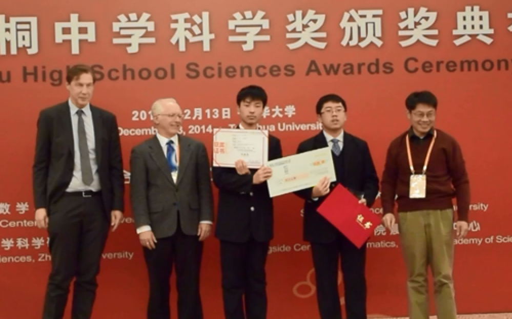 “丘成桐中学科学奖”由清华大学数学科学中心主任丘成桐教授和泰康人寿保险股份有限公司董事长陈东升先生共同发起,致力于发现人才、奖掖后进,培养和选拔优秀科学人才,推进中学科学教育的发展,提高中学生科研创新能力,帮助他们更好的适应未来社会的挑战。丘成桐中学科学奖于2013年正式设立,下设丘成桐中学数学奖和丘成桐中学物理奖,从而搭建起以丘科学奖为总体框架,以数学奖和物理奖为基础的中学生科研创新能力培养模式。