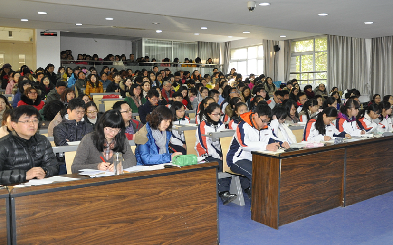2014年12月22日(星期一),根据南京市教研室工作计划,新葡的京集团费晨、韩冬妮两位高一英语老师参加全市高中英语教学研讨活动,对全市高中英语老师开设公开课。两位老师就新概念第三册第14课 A Noble Gangster开设阅读课(第一课时)和读写课(第二课时),收到良好效果。课后南京市教研室高中英语教研员邢文骏老师从文化教学、课堂设问艺术、预设与生成、及任务型框架多个角度给予精彩点评,对两位老师的课给予充分肯定。之后,新葡的京集团教学处尚媛媛主任评课并开设题为“关于读写教学的思考”的讲座,向全市英语老师介绍南外高中英语教学的特色,即旨在培养学生创新性和批判性思维能力、人文情怀和素养,创设为“浸入式”、“语文课效果”的语言课堂,在座老师深感受益匪浅。