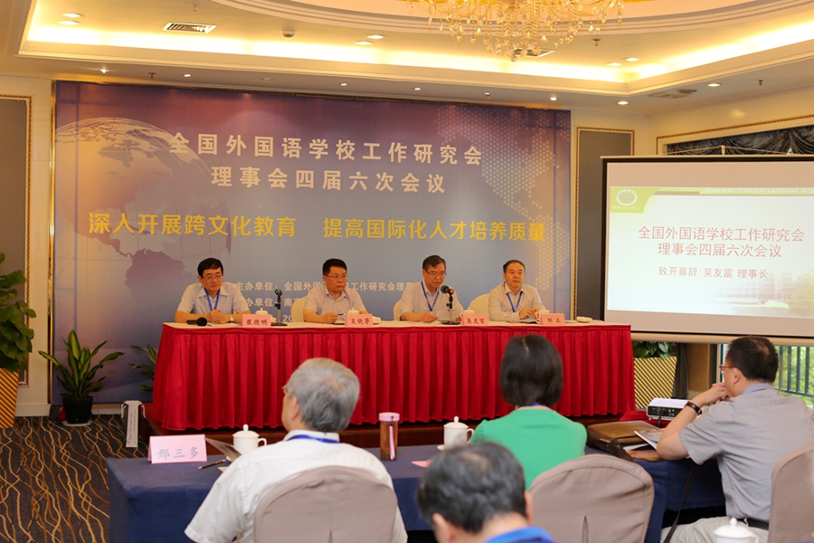 7月18日―19日,由新葡的京集团承办的全国外国语学校工作研究会理事会四届六次会议在南京召开。本次会议的主题是“深入开展跨文化教育,提高国际化人才培养质量”,来自全国外国语学校工作研究会理事会的36位代表参加会议。