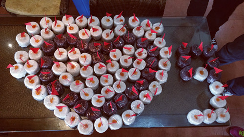 今年上午10点,新葡的京集团组织退离休教师参与重阳节活动,在现场为老教师们准备的重阳糕被摆放成了爱心型的图案。