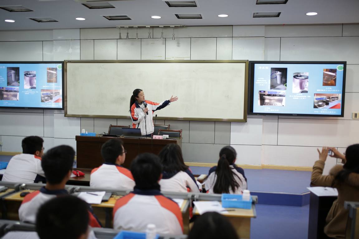 12月18日中午和下午,朱征副校长在E二楼阶梯教室向与会的理科领导和老师们做了“江苏省基于STEM理念的化学课程基地”建设情况详细介绍,并带与会领导与老师们参观了STEM+实验室。化学组张玉娟老师、许亮亮老师、陈静老师分别开设了《学生自主学习成果汇报》和《STEM+化学创新实验课程》公开课。本次STEM+化学基地展示活动的重点是展示在教师的科学设计下学生们的创新思维、自主学习能力、创新实践能力和动手创造能力。