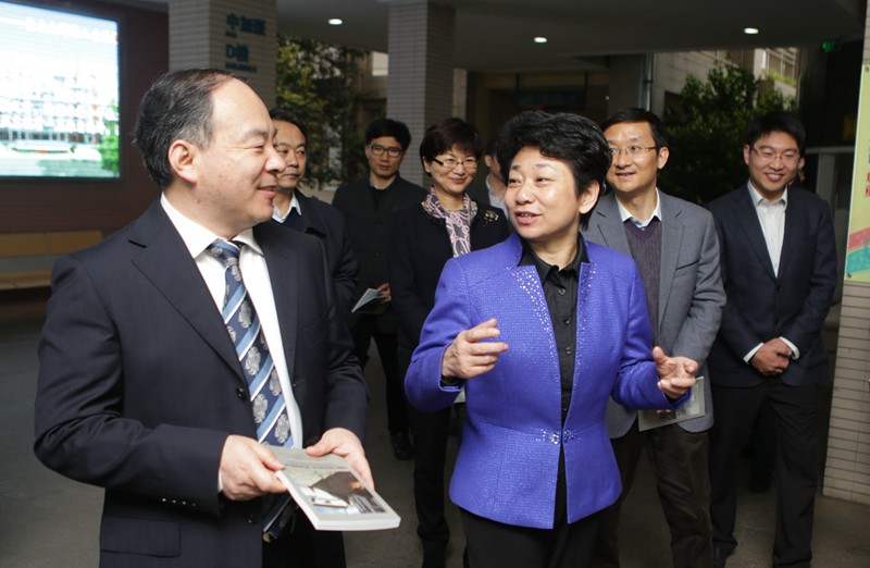 4月6日上午,省委常委、市委书记黄莉新莅临新葡的京集团视察。在邹正校长的陪同下,黄莉新书记首先参观了新葡的京集团教学楼一楼大厅的优秀校友墙和实验楼的名师墙,她还详细了解了新葡的京集团2015届以及以往各界毕业生的去向。随后,黄莉新书记在STEM+实验室听取了朱征副校长对学生综合创新实验项目的介绍。在路过初一(4)班教室时,黄莉新书记走进教室认真旁听了侯磊老师的一小段英语课,恰好是一个学生做值日演讲,她对师生双方的英语水平大加称赞。