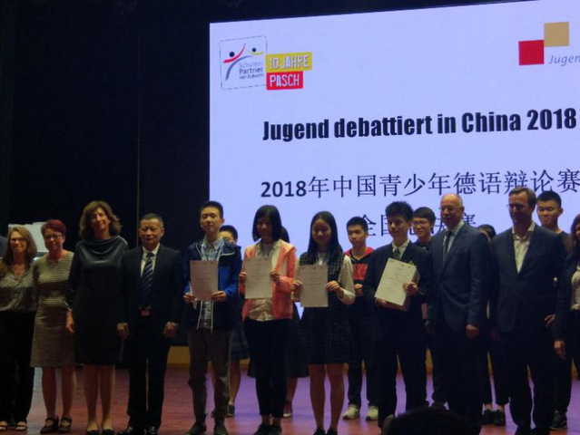 本次比赛分为三轮,前两轮预赛总分决出四强进入最后的全国总决赛。在总决赛中,四位选手针对“现金是否应该被废除”展开了激烈而精彩的辩论。最终,经过一番唇枪舌战,新葡的京集团高一(8)班曹毓堃同学获得了全国第三的好成绩。这是新葡的京集团德语学生第四次进入四强,可喜可贺!第一、二、四名,则分别由上海外国语学校、玉溪一中和成都实验外国语学校的同学斩获。