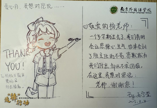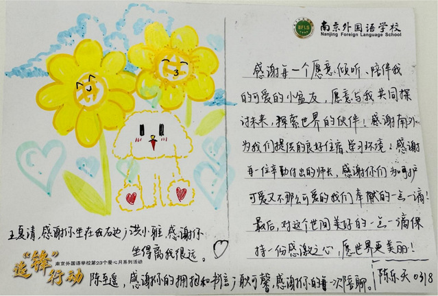 当春风再度唤醒立人行健梧桐大道,当玉兰重新缀满北京东路的枝头,南外校园一直回荡着爱心月的温暖约定。