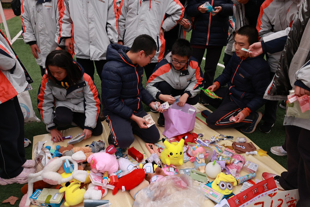 义卖过程中,同学们充分发挥自己的聪明才智和沟通能力。有的同学当起了“推销员”,热情地向来往同学介绍商品的特点和用途;有的同学负责收银和找零,认真细致,确保每一笔善款都准确无误;还有的同学主动帮忙维持秩序,引导顾客挑选商品。大家分工明确,配合默契,整个义卖现场充满了欢声笑语和浓浓的爱心。除此之外,有不少同学来到主席台前推销班级、社团的物品,四处洋溢着欢笑。